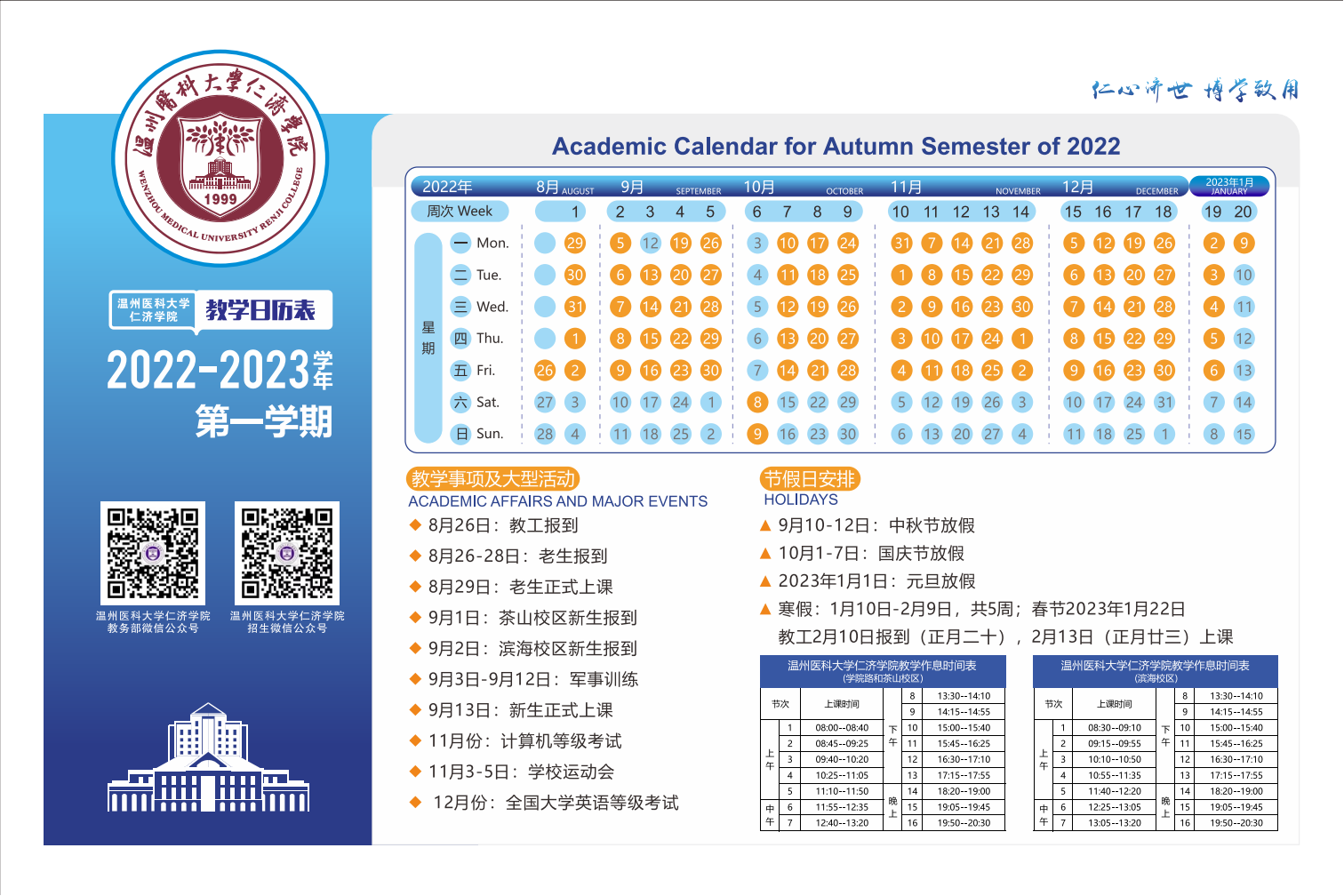 2022-2023学年第一学期和第二学期教学日历表