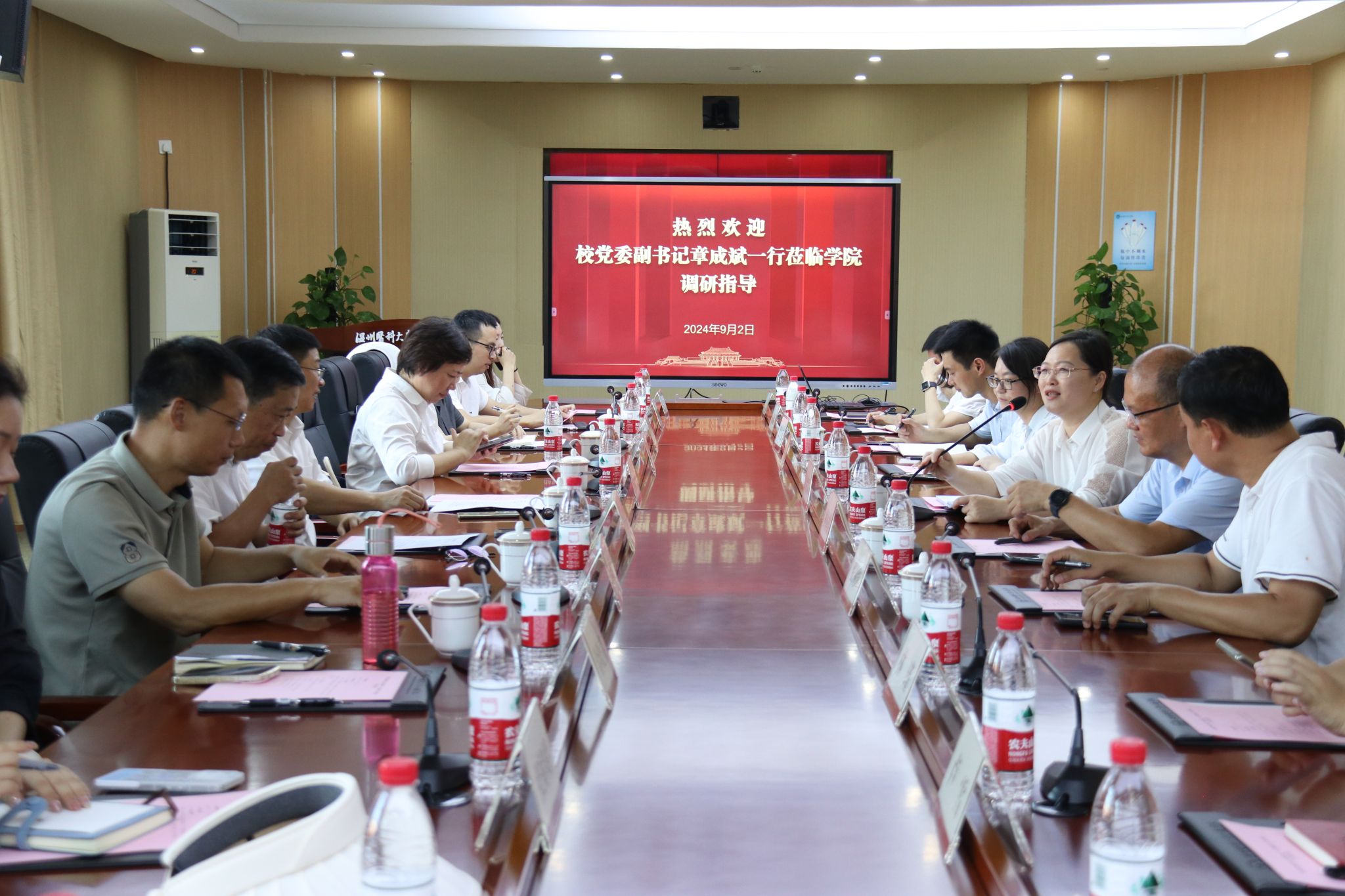 9月2日下午,公司党委副书记章成斌,公司党委委员、宣传部(教师工作部)部长李军红,员工工作部副部长、员工工作处副处长金剑锋、叶圣到公司调研指导迎新工作。公司领导班子成员陪同走访并参加座谈。