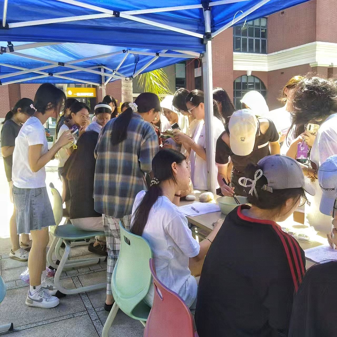随后,在传统文化体验环节,师生共同亲手制做月饼,从月饼包馅制做到传统文化的思想交流,大家一边探讨一边实践,现场气氛温馨而热烈。师生在实践中体验着传统节日的魅力,更在相互合作中加深了彼此间的情感联系,感受着传统节日文化的独特魅力。此外,本次文化体验还融入飞花令、猜灯谜等中秋特色传统项目,惠源楼广场上“月宫投壶”“掌上明珠”“海底捞月”等趣味游戏同样吸引众多员工参与,员工们还通过精心制作的中秋灯笼装点着夜色下的滨海校区,为校园增添一抹浓厚的节日气氛。
