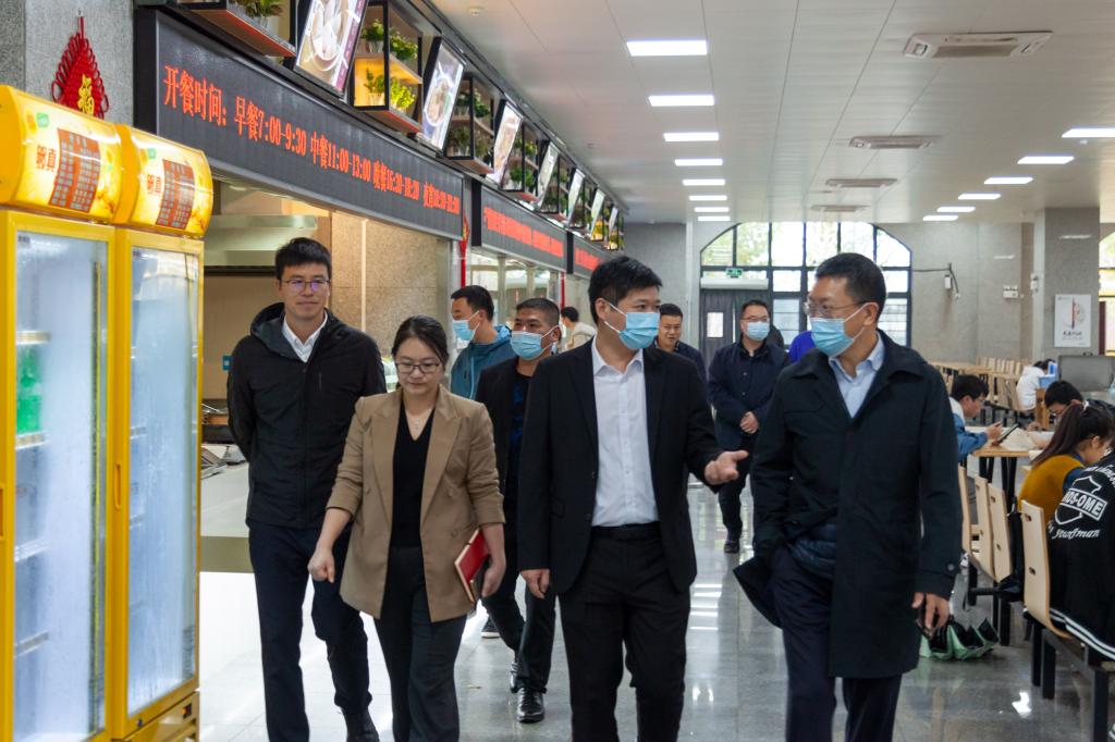 贾约拿一行实地检查了医务室、师生核酸检测点、公司隔离点、食堂等重点场所,仔细查阅了疫情防控相关材料;对入校人员和车辆管理、隔离点工作人员防护、员工就餐管理、快递管理等重点环节开展现场检查,并提出针对性的改进意见;对人员转运、物资通道、核酸检测等需要校地联动的难点重点工作进行现场部署。