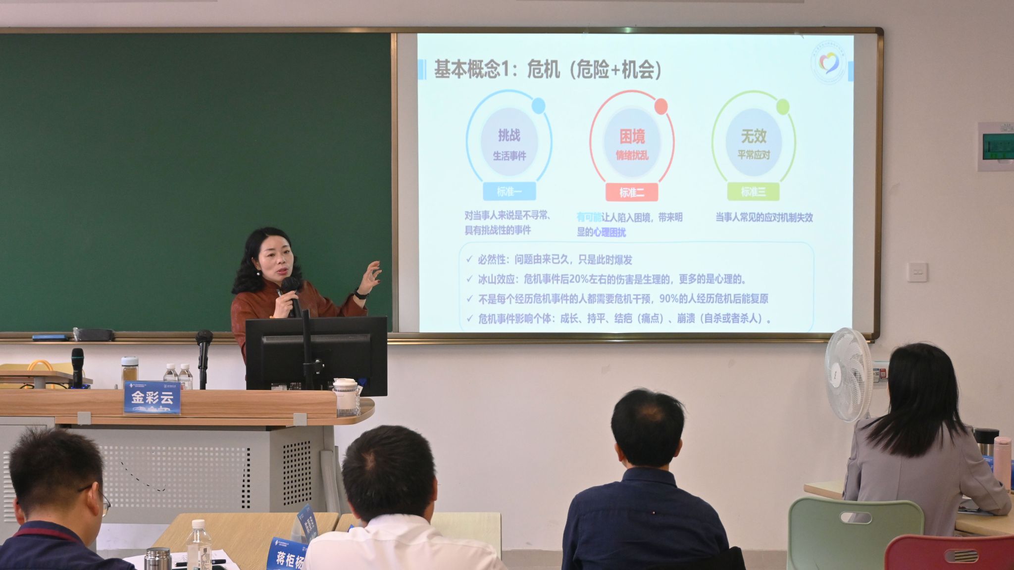 集中授课环节,专家就老员工心理障碍识别、校园危机干预、家校联动等专题授课并进行现场评估、模拟谈话及干预演练,同时结合自身多年一线员工工作经验与学员分享了诸多疑难案例和危机事件,通过呈现典型案例发生、发展及干预过程总结反思,理论与实践结合帮助学员树立危机识别意识、夯实能力之“基”,深入体会在心理问题日渐低龄化的大环境下个体、家庭、社会三者间的紧密联系,使学员们深切感受到心理专业知识干预能力对于守护校园平安和员工健康成长的重要意义。