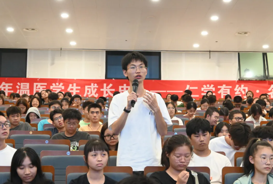 赵伟教授深情回顾其在温医求学的难忘时光,在学习经历与对医学事业的热爱讲述中,同学们受到了深深地鼓舞。他鼓励同学们要珍惜大学时光,努力学习专业知识,培养创新思维和实践能力,为将来在医学领域的发展打下坚实的基础。鼓励同学们只有经过不断努力奋斗,只要不断在拼搏的路上前行,前途自然就会明朗清晰。