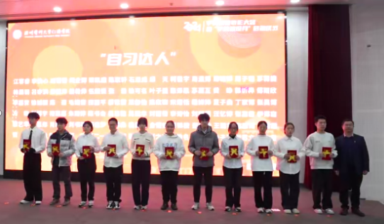 大会表彰了2023-2024学年学业优秀个人和集体,并举行学风督导员和学业导师聘任仪式,以及“优良学风班”培育创建授旗仪式。优秀员工奖学金获奖代表、新生寝室优学奖获奖代表、新生班级优学奖获奖代表分别围绕个人学习经验、寝室学风建设经验、班级学风建设进行分享交流。