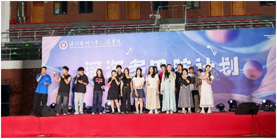 当晚18时,比赛正式进入选手比拼环节。二十位选手依次登台,以独特声线诠释多样曲风,为观众呈现一场精彩绝伦的音乐对决。比赛现场陈卫老师在点评时,不仅高度认可了大赛严谨有序的组织工作,更对选手们的表现给予充分肯定:“‘十佳歌手’大赛早已超越了一场简单的音乐竞技,它是公司以美育润心、以文化育人的生动实践,让医学教育在专业之外,多了一份人文温度。”经过激烈比拼,最终,来自医学三系的吴诺贝凭借其极具穿透力的嗓音声贯长虹,民族美声技惊四座,她对歌曲《春天的芭蕾》的完美演绎,征服了所有评委和观众,一举夺得本次大赛的冠军,来自护理系的宋思齐和医学三系的刘翰谦分别荣获亚军和季军。而当全体20位选手再度登台,共同唱响《大梦想家》时,熟悉的旋律瞬间引发全场观众大合唱,为这场兼具音乐魅力与医学温度的比赛,画上了圆满句号。