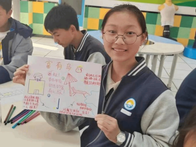 在朱槿花的陪伴下,志愿者们还为小朋友们开展了海岛上的红色课,通过画国旗、唱红歌、演绎红色情景等形式,为他们心中的爱国主义之树浇水施肥。跟随着团队成员的脚步,小朋友们畅游兴趣岛,以“你的快乐来源于何处”为引入点,志愿者们根据小朋友的“快乐来源”将其分为不同的“岛屿”,引导他们绘画“岛屿一日游”作品并相互介绍。课程以兴趣探索为切入,依托绘画疗法、接纳与承诺疗法的专业知识,引导、培育小朋友的绘画创作和演讲表达能力,提高他们对自我认知水平和对未来的规划能力。