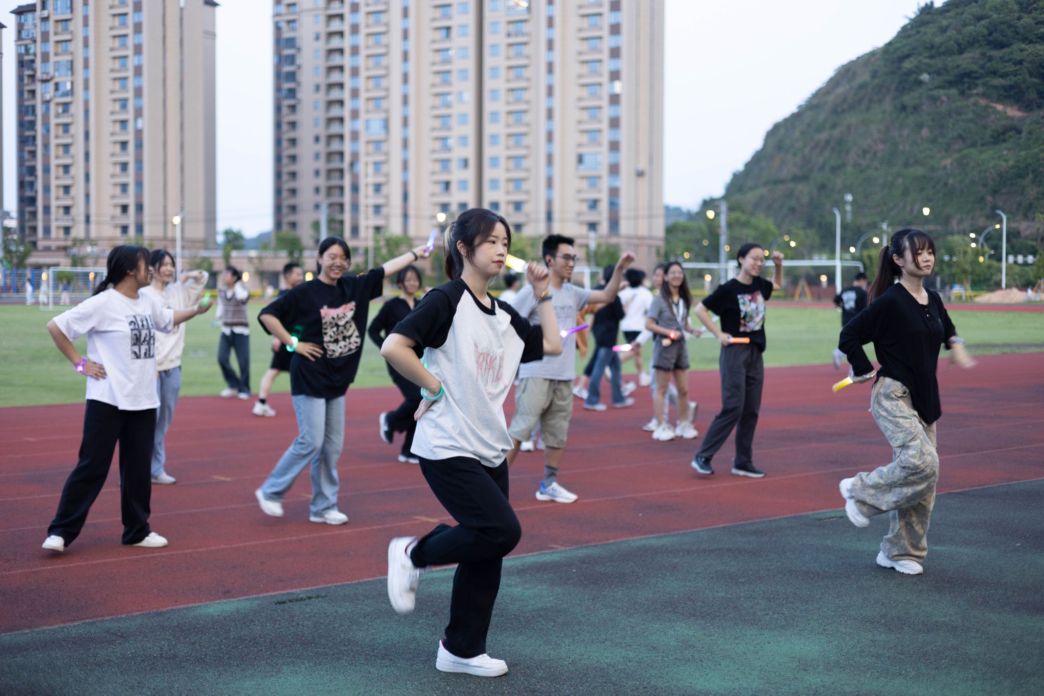 在K1体育夜晚的操场,有同学带着荧光手环,有同学挥舞着荧光棒,在动感的音乐旋律中转髋扭跨,伸腰展背。热身后同学们携手同行,跑道上点点荧光汇聚成队,鼓励和坚持在喜闻乐见的音乐和灯光下同响。此外,校园广场舞活动还邀请了公司舞蹈社同学进行歌舞表演,广场舞歌单也是紧跟潮流,现场同学跟随音乐节拍,翩翩起舞,笑容满面。不少同学表示在寝室听到操场传来的音乐,看到操场荧光点点,忍不住呼朋唤友走出寝室前往热闹的操场。