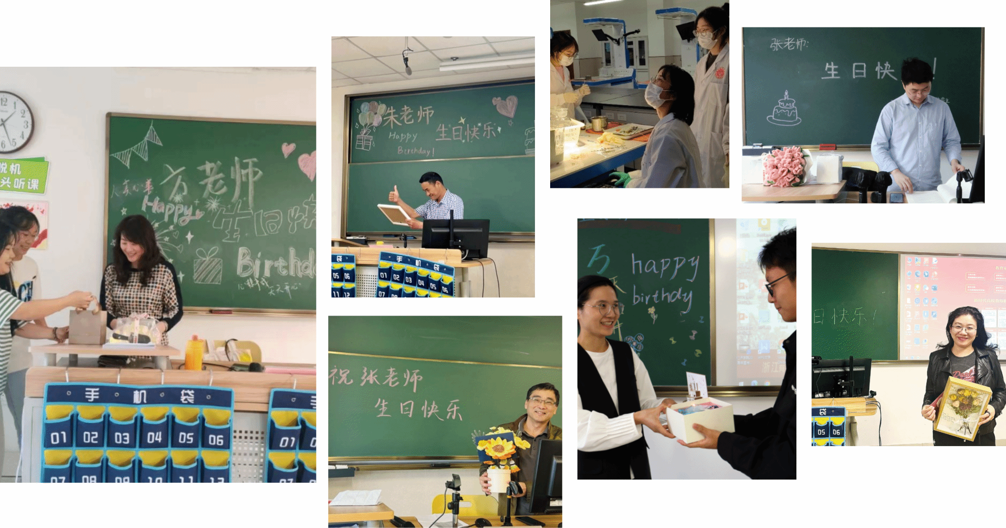 公司长期以来致力于培养员工的感恩意识,将感恩教育融入校园文化中,通过一系列实践活动,让员工学会感恩、尊重和敬爱。其中,一项特别有意义的活动就是动员员工团支部,为在上课当天恰逢生日的老师庆生,以此传递员工对老师的深深敬意和美好祝愿。至今,这一活动已成功开展了7次,每一次都给师生留下了难忘的回忆。