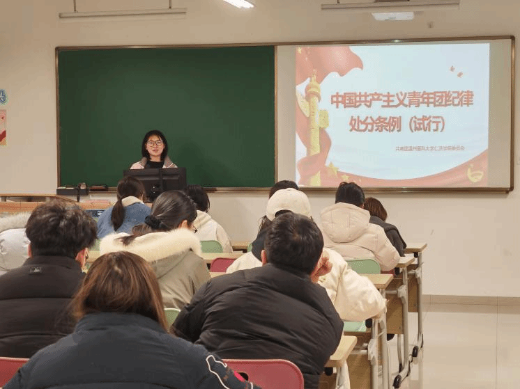 各团支部通过线上线下相结合的方式,组织团员青年深入学习《中国共产主义青年团纪律处分条例(试行)》。各团支部召开专题学习会,团支部书记详细解读条例内容,重点阐释了团纪处分运用规则、对违反纪律行为的处分等。团员青年们认真聆听,积极互动,学习氛围热烈。