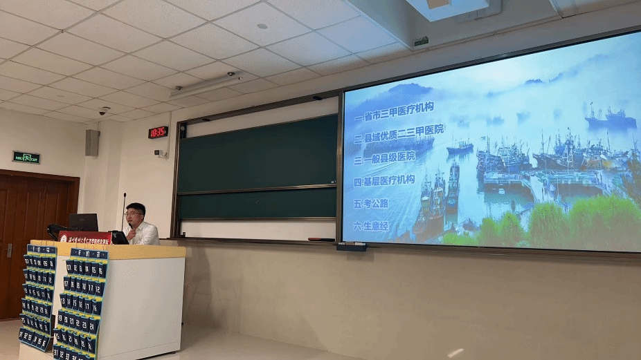 讲座伊始,叶老师以轻松愉快的对谈形式与同学们互动,分享了洞头海岛的地理风貌、历史文化和教育特色。在轻松的氛围中,他以员工身份开启了一场关于医学学习、职业发展与个人成长的深度交流。