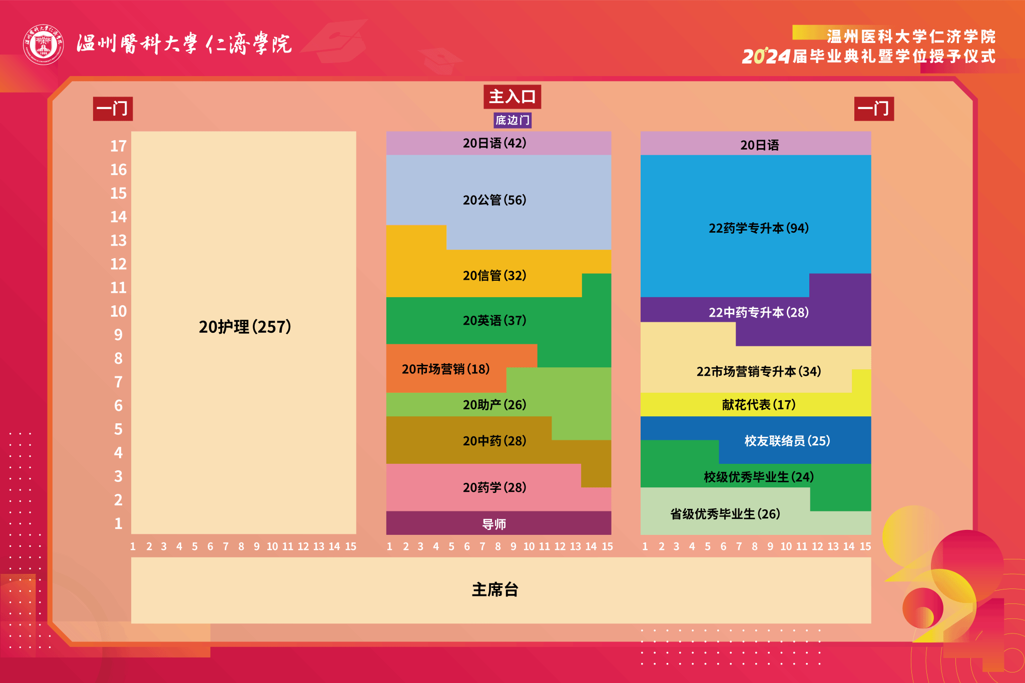 1. 请参加毕业典礼暨学位授予仪式的员工穿好学士服(里面白色衬衫、深色长裤、皮鞋或深色鞋子,学位服着装要求见附件),在当天下午1:15之前按划分的场地入场完毕(见下图),会议期间请将手机调至静音或振动状态。