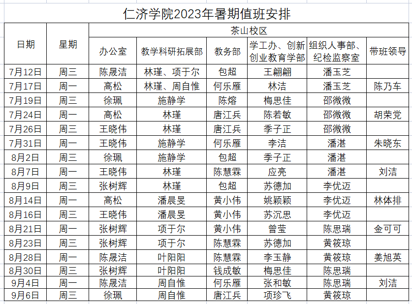 (二)放假期间,原则上每周一、三上午为各部门处理日常事务时间(值班安排详见附件)。