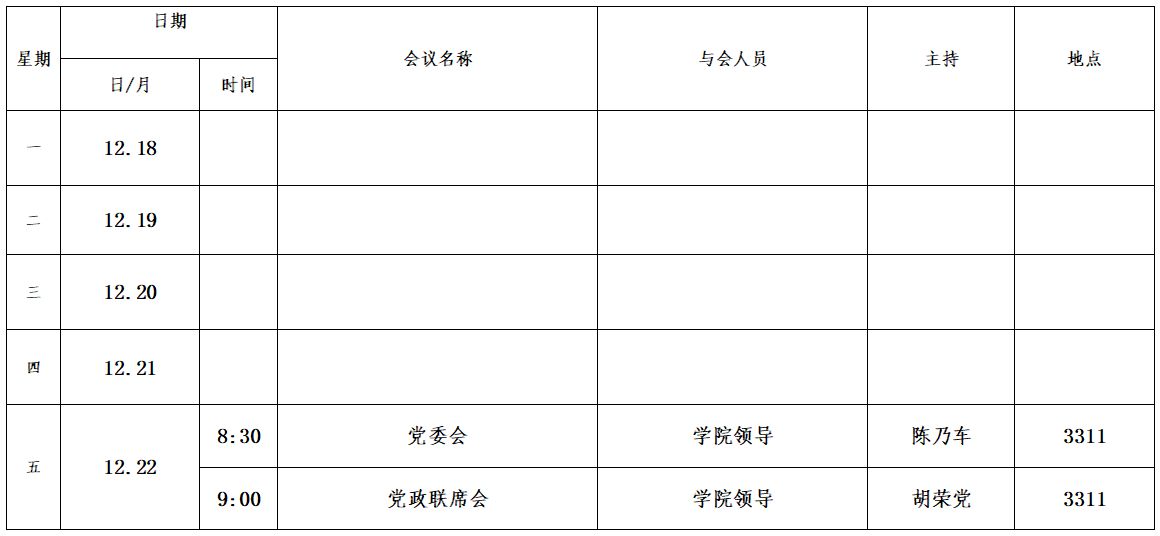 第十五周会议安排