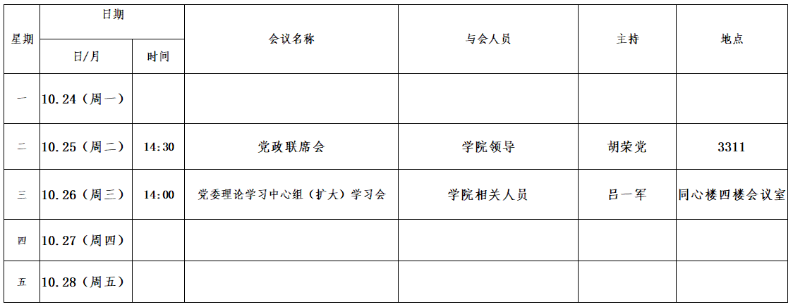 第十周会议安排