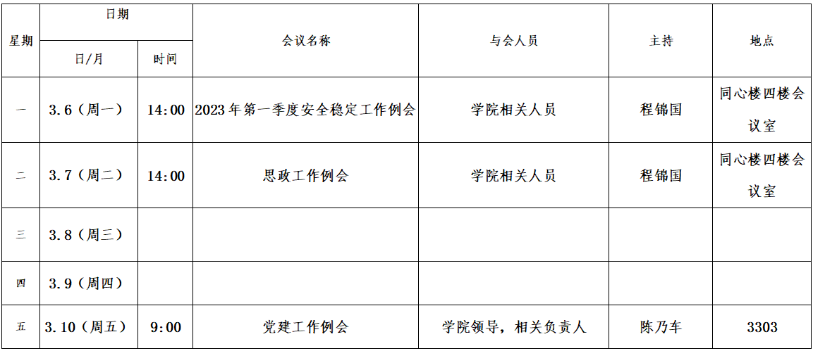 第五周会议安排
