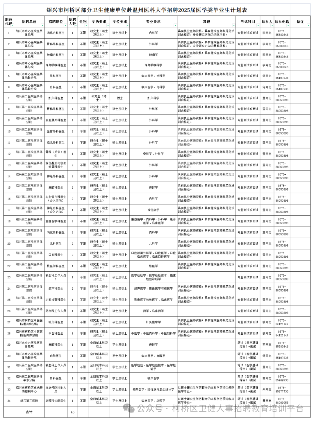 本次计划招聘事业单位工作人员45名,共34个职位,全部为卫生专业技术职位。