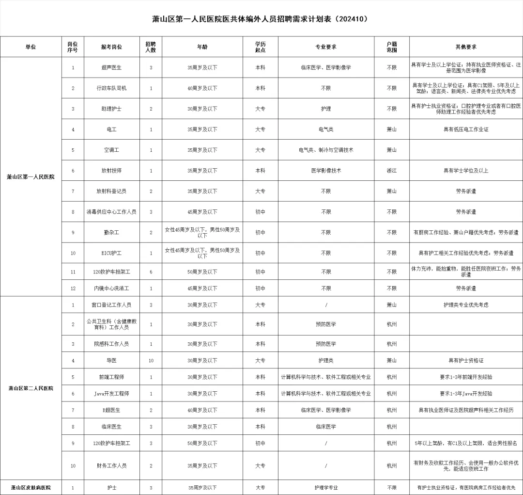 萧山区第一人民医院医共体总院编外人员招聘需求计划表.xls