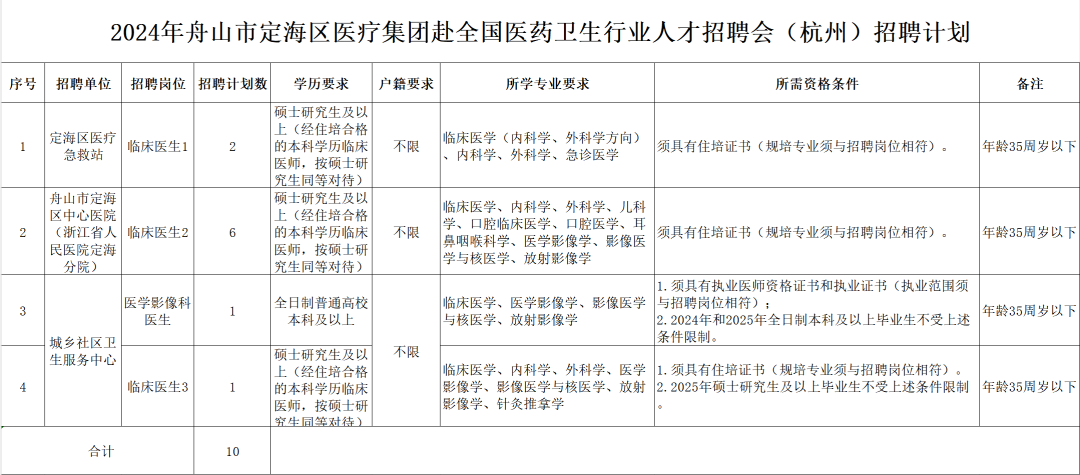 为加快推进定海卫生事业发展,根据《浙江省事业单位公开招聘人员暂行办法》要求,经研究,舟山市定海区医疗集团决定赴全国医药卫生行业人才招聘会招聘。现将有关事项公告如下: