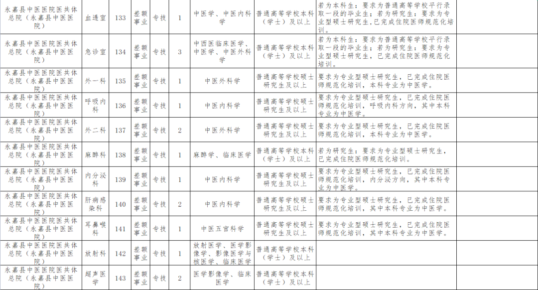 (二)永嘉县人民医院医共体总院(永嘉县人民医院)、永嘉县中医医院医共体总院(永嘉县中医医院)招聘使用事业编制报备员额。