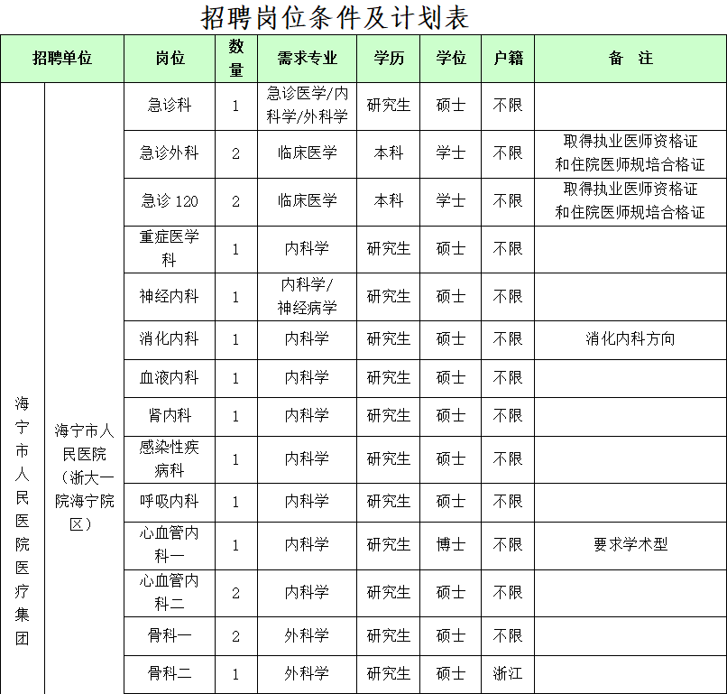 海宁市卫健系统公开招聘事业单位卫技人员71名,招聘岗位详见招聘岗位条件及计划表(附件1)。