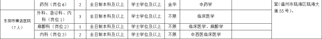 东阳市中医院(东阳市教授路999号东阳市中医院行政楼三楼人事科),联系人:马老师,0579-86210235,邮箱:435905744@qq.com;