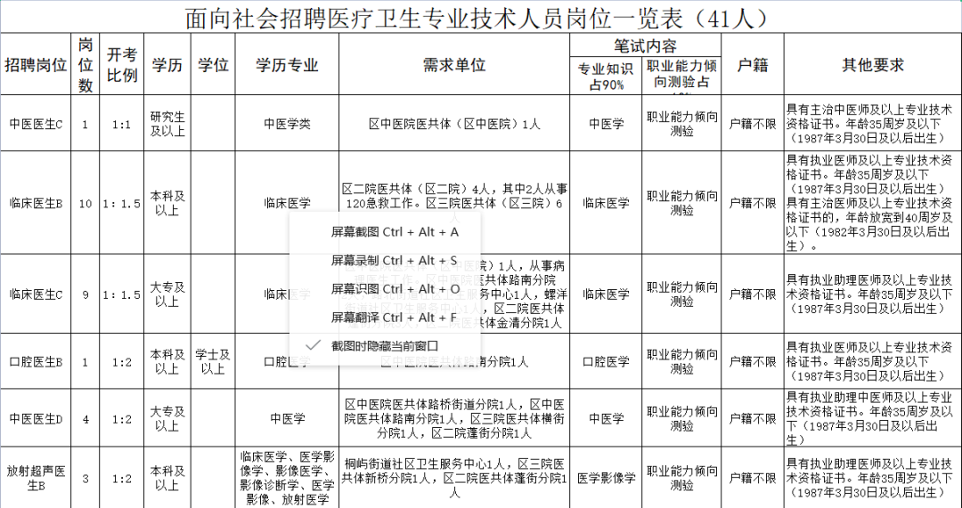 (二)面向社会招聘医疗卫生专业技术人员41名;