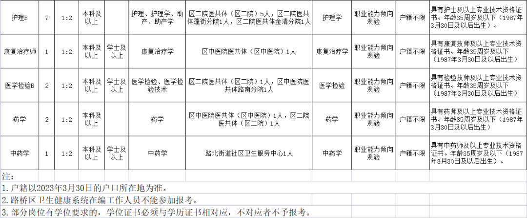 3.路桥区卫生健康系统在编工作人员不得报考。