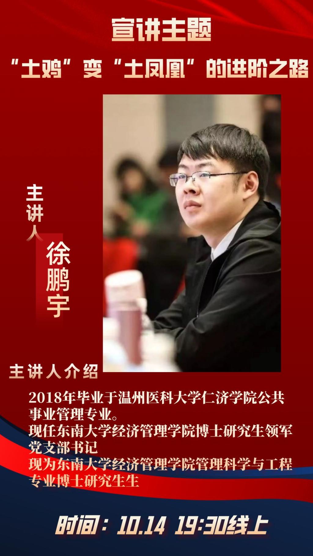 现任东南大学经济管理公司博士研究生领军党支部书记、曾就读于仁济公共事业管理专业的徐鹏宇学长分享了自己的有关经历。学长通过回忆往昔读书经历,感概自己的生活变迁,分享自己的人生经历。到讲座的最后,学长还以亚洲一种毛竹为例,“毛竹在最开始的五年几乎看不到它的成长,但是一旦突过五年这个时间点,它就会飞速生长。” 他希望同学们像这种毛竹一样,要“敢于尝试,勇于放弃,不甘平凡”,不断学习,不断成长。