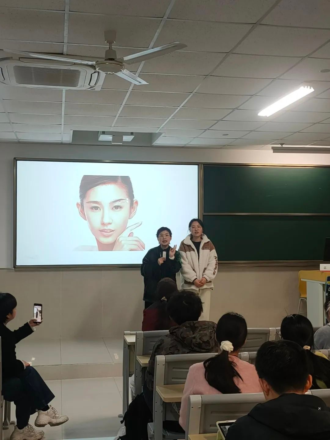 讲座分为理论讲解与实践操作两个环节。在理论环节,嘉蔓老师首先从职场形象的重要性切入,结合具体案例,详细讲解了职场妆容的基本原则与操作步骤。通过对色彩理论、肤质分析、底妆打造等专业知识的系统讲解,为员工们奠定了扎实的理论基础。