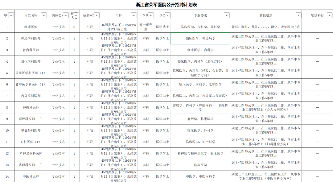 招聘岗位经限时集中报名、组织遴选并确定拟聘人员后,尚有空缺的医、护等专业技术岗位(序号1至14号、17至37号),纳入浙江省省属事业单位特殊专业技术岗位招聘目录,在2024年度内继续招聘。