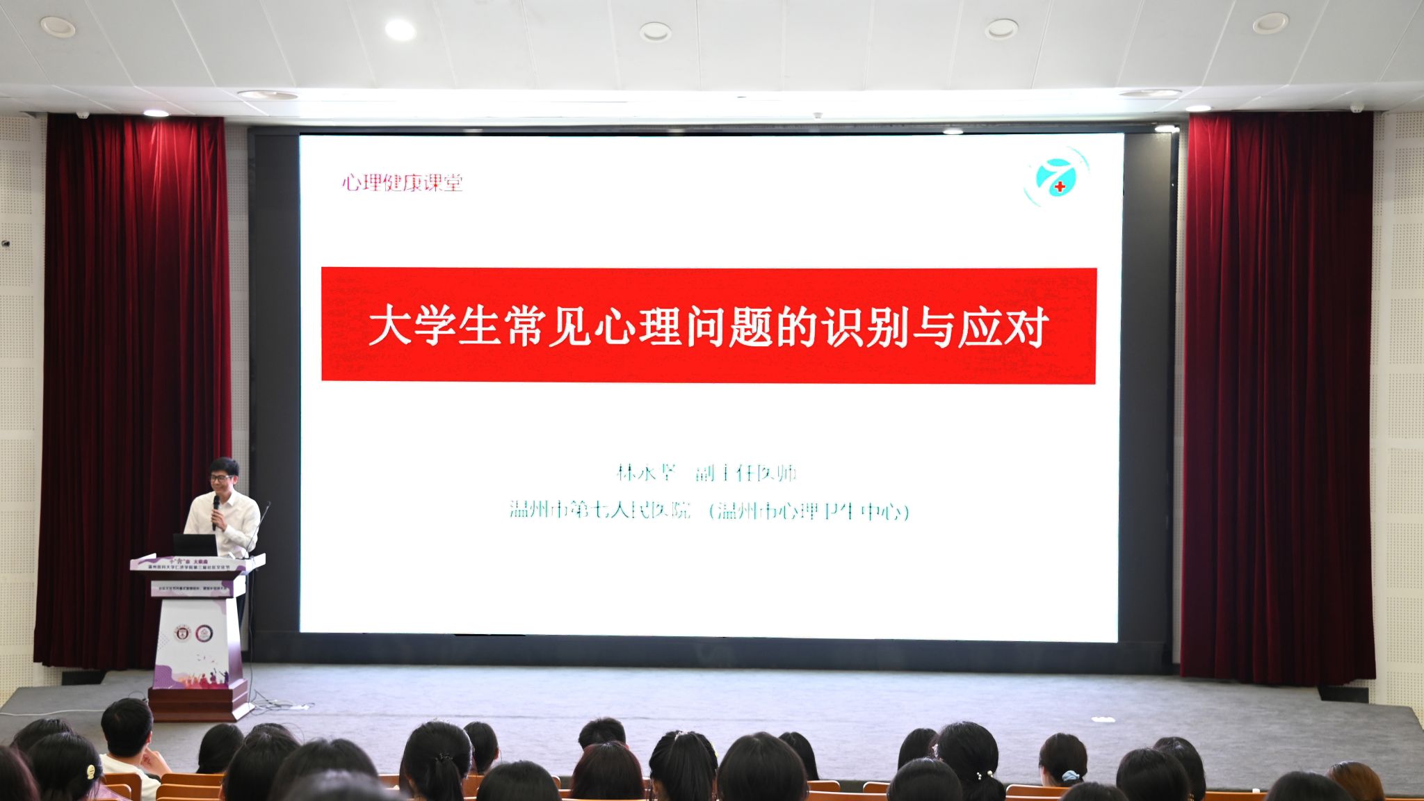 温州市第七人民医院副主任医师林永坚,面向全体楼层长和寝室长开展了《老员工常见心理问题识别与应对》的专题培训,对老员工常见的心理问题和精神障碍的种类、特点、应对措施等做了详细的介绍,赢得了同学们的阵阵掌声。