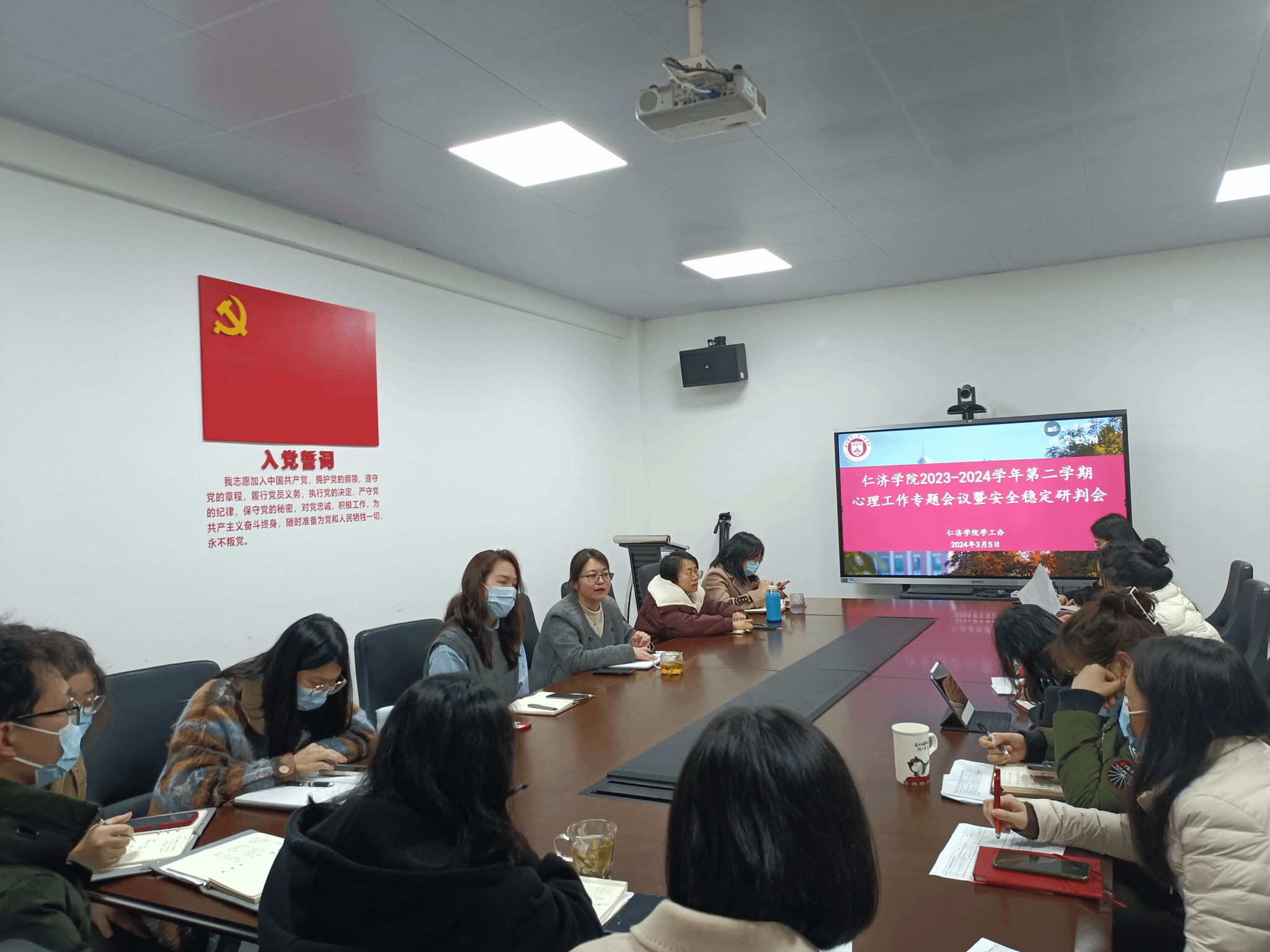 为扎实推进心理健康教育工作,确保新学期各项工作安全平稳有序进行,3月5日至3月7日,公司在茶山、滨海两个校区分别召开2023-2024学年第二学期心理工作专题会议暨安全稳定研判分析会。公司党委副书记姜旭英主持,全体辅导员参加会议。