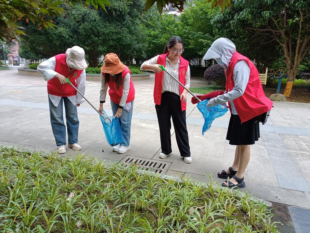 党支部成员参与志愿服务活动,积极助力全国文明城市创建。志愿者在校园地下车库出入口、主要交通干道开展文明交通督导志愿活动,在交通早晚高峰引导员工骑电动车时戴头盔,不载人,文明出行。志愿者们还深入到高教博园社区开展环境卫生整治志愿服务活动,承担起小区清洁美化工作。他们身着志愿者马甲,使用垃圾钳、垃圾袋等工具对各自划分的公共区域进行卫生清洁工作,全面清理路面和绿化带的垃圾,整理摆放停放无序的非机动车辆等,为小区居民打造了一个干净整洁的环境,得到了居民们的一致好评。