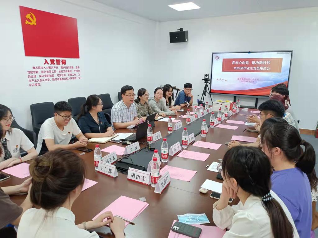 6月23日下午,公司在7A113召开2022届毕业生党员座谈会。公司党委书记陈乃车、党委副书记刘洁出席座谈会,16名毕业生党员代表参加座谈会。座谈会由学工办主任姜旭英主持。