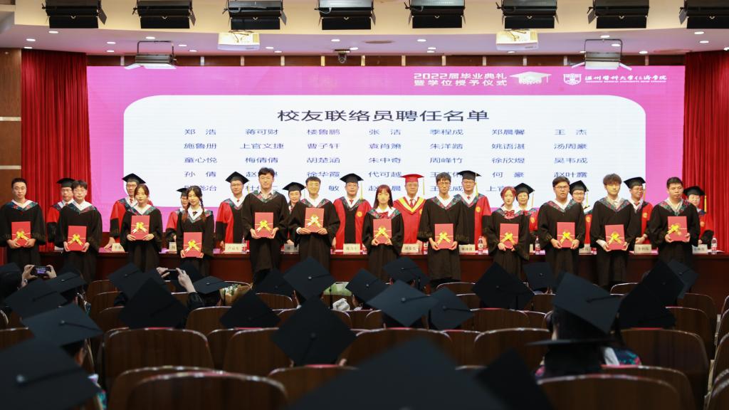 典礼上,省级优秀毕业生代表、校级优秀毕业生代表、考研卓越奖获奖代表上台接受表彰,本届毕业生(第二批)中,共有40名同学荣获省高校优秀毕业生,153名同学荣获校优秀毕业生称号,19名同学荣获考研卓越奖。同时,公司领导为员工联络员代表颁发聘书。