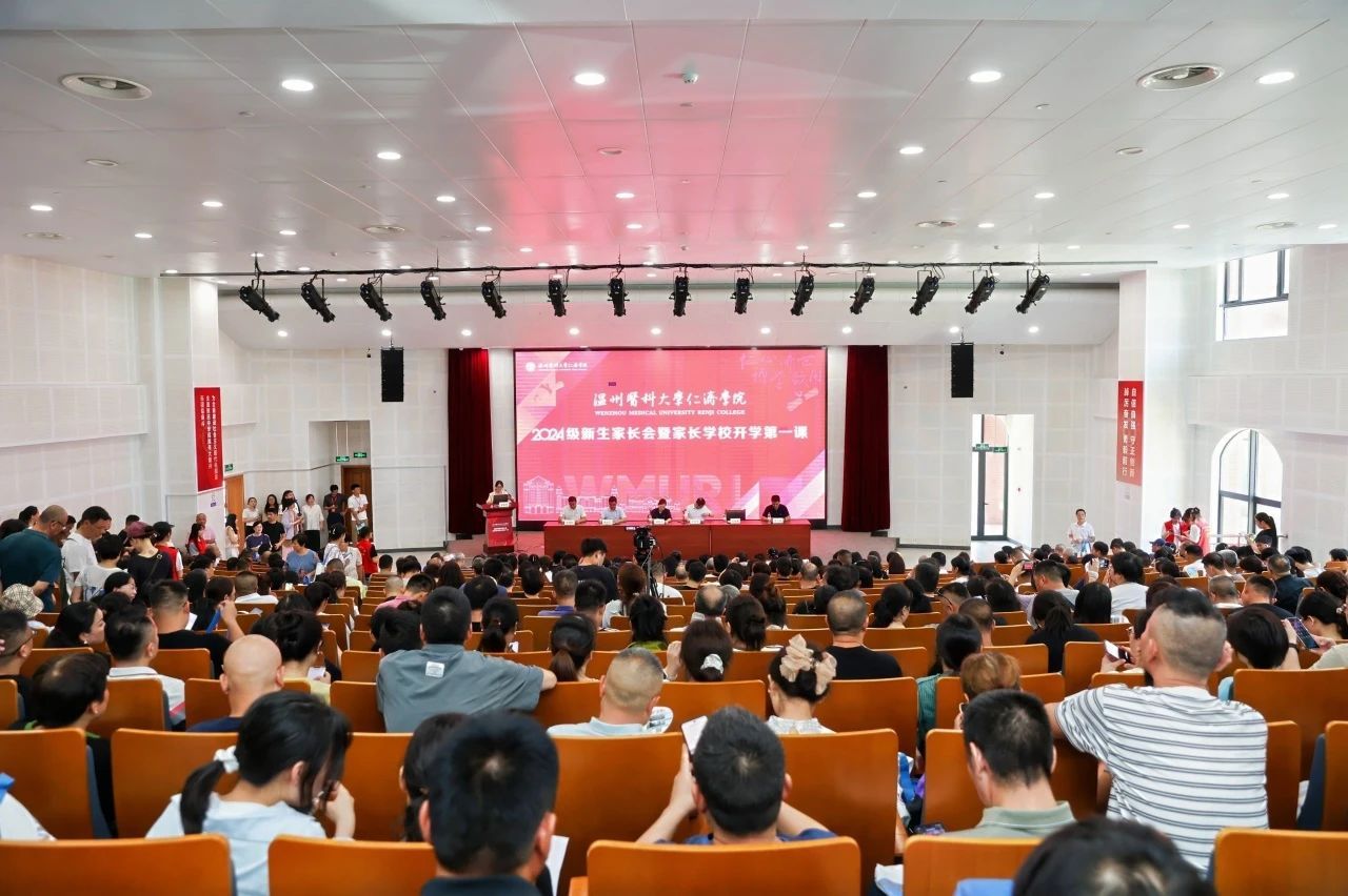 为进一步推动家校合作育人,凝聚家校育人的力量,9月4日,2024级新生家长会暨家长公司开学第一课于滨海校区仁心厅举行,并于线上同步直播。公司党委书记彭红雷,经理李章平,副经理戴建春、张树辉,党委副书记张立康,温州市第七人民医院林永坚主任及各系新生辅导员出席,五百余名新生家长共同参加。会议由党委副书记姜旭英主持。