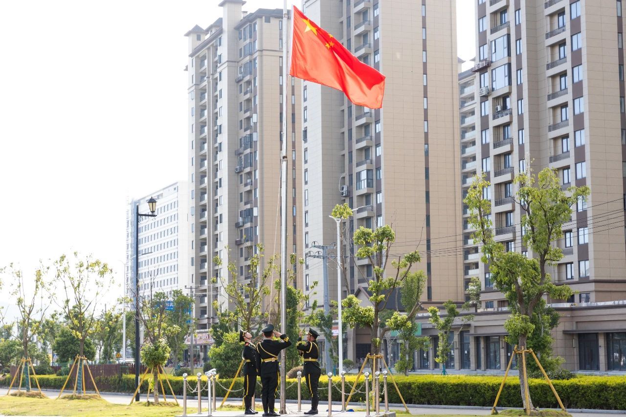 大会在庄严的升旗仪式中拉开序幕,全体师生肃立,奏唱国歌。