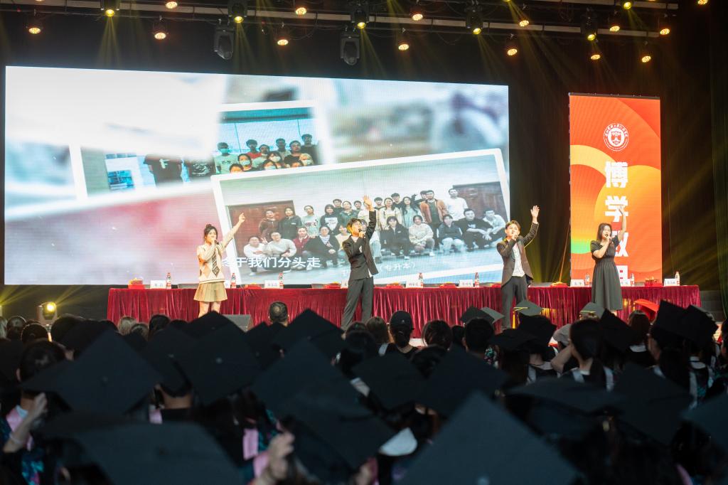 典礼最后,2023届毕业生的辅导员们和毕业生代表,共同以歌曲《一路生花》为同学们送去诚挚的祝福,毕业生们起身一同合唱,现场氛围分外温馨。毕业,是校园生活的告于段落,更是人生旅程的再次启航,自此毕业生们将以崭新的面貌踏入人生新征程,在新时代中大有作为,用青春热血在无数个岗位中书写新时代的答卷!