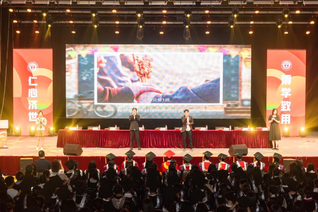 胡荣党向即将毕业的同学们表示诚挚的祝贺,他与大家共同回望的四年来校园生活中的点滴幸福与成长故事,谈道“从海上花园洞头到大罗山脚下,K1体育的每一处都见证了同学们的孜孜求学之路。”胡荣党向毕业生提出三点希望:第一,志存高远,勇于担当;第二,锐意进取,终身学习;第三,突破自我,创造创新,在推进中国式现代化中贡献青年力量。