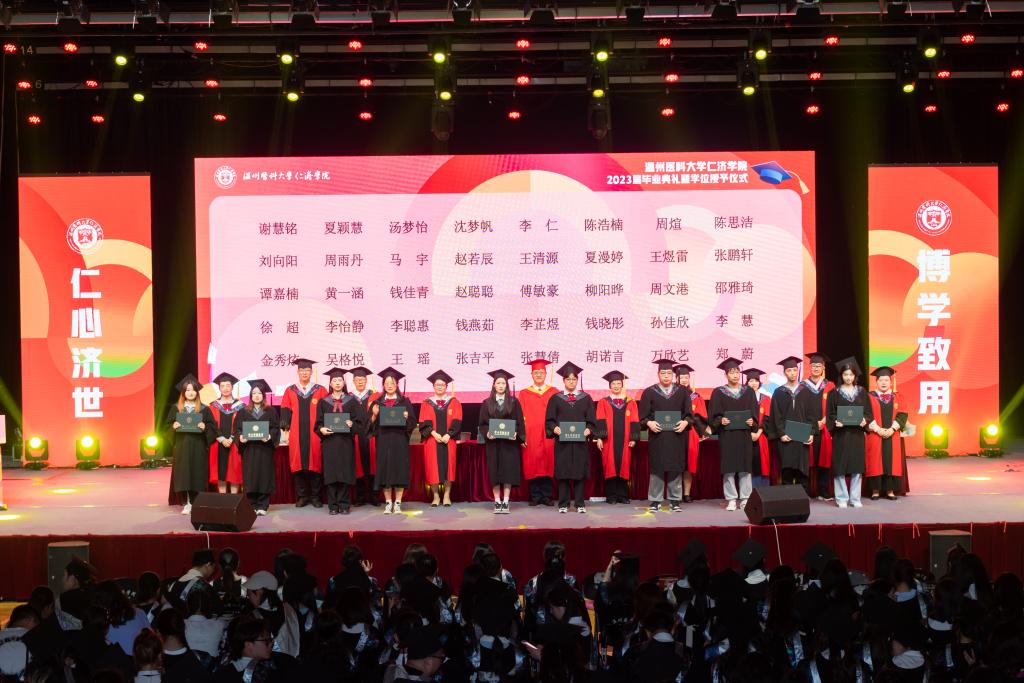 典礼上,对荣获浙江省高校优秀毕业生称号、校优秀毕业生称号和考研卓越奖的优秀学子进行表彰,各位导师为荣誉获得者代表颁发荣誉证书并合影,同时为员工联络员颁发聘书。毕业生代表们也为默默付出、诲人不倦的导师代表鲜花致礼,表达内心最诚挚的感恩与敬意。