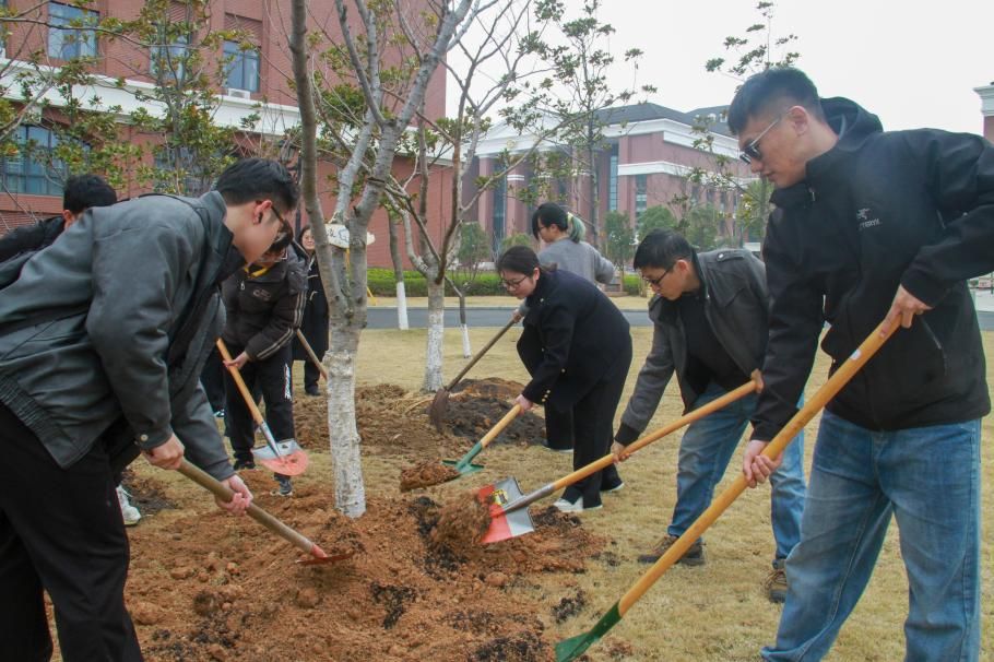 在滨海校区植树场地,一派繁忙景象。师生们拿着铁锹,挥锄培土,扶植栽种。“大家要注意‘三埋两踩一提苗’,边埋土边踩实,记得把树苗扶正,”公司党委副书记姜旭英和同学们一起栽种,手把手讲解植树小技巧。“从某种意义上而言,一棵树就是一个微型生态系统,”植树间隙,姜旭英老师以身边的树苗为引,跟同学们交流生态文明建设的重要性,她勉励广大青年学子要结合自己的专业特点,积极投身环境保护、劳动教育和生态实践,做生态文明理念的积极传播者和模范践行者,展现新时代青年的生态文明建设责任和担当。