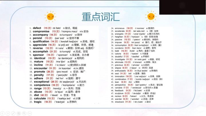 来自22级中医学专业的“小老师”周心驰,曾获得英语四级考试594分,六级考试583分的优异成绩。她首先简要讲述了备考的重心,带领同学们理清全卷的重难点,提高了同学们的备考效率。随后,她分享了自己的应试经验与做题技巧。例如,做听力时要做到视听结合和同义词替换,强调做到这点就要注意平时词汇的积累。面对翻译题这一“拦路虎”,“小老师”还贴心地罗列了许多重点词汇以及翻译模版,供同学们学习参考,为同学们的备考提供便利。