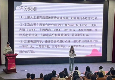 为进一步发挥班级在心理健康教育中的积极作用,增强班级凝聚力,优化员工心理素质,促进员工人格完善,公司员工心理健康与素质发展工作室于3月30日在报告厅举办了“拒绝自我PUA”心理主题班会评比大赛。各系心理委员及师生代表观看比赛。