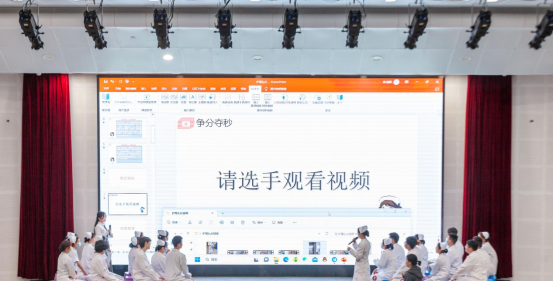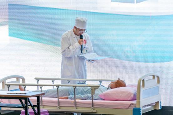 本次大赛共分为初赛、决赛、宣誓三个部分。初赛考核员工的基本护理礼仪常识,以笔试成绩筛选出十二组选手。决赛内容分为视频纠错和情景剧表演两个部分。在视频纠错环节,设定了仪容、仪表、站姿、行走、坐姿以及拾物、端治疗盘、推治疗车、推轮椅等基本护理礼仪规范,选手们凭借扎实的专业知识和充分的准备表现出色,精彩抢答赢得阵阵掌声。在情景剧表演环节,选手们思维敏捷、见招拆招,用优雅的姿态、规范的技术操作、温馨的语言自编自导自演,展示了患者入院护理礼仪、老年护理礼仪、护士查房护理礼仪、护士工作环境中接听电话礼仪等情景,传达出敬佑生命、甘于奉献的职业精神,每一组出场都精彩纷呈,现场掌声不断。