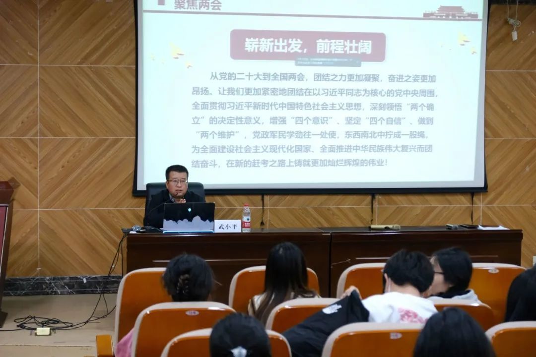 了让同学们深刻了解两会精神的重要意义,2023年11月17日15:50,K1体育分党校于茶山校区求新楼报告厅进行中共党员学堂第三次课暨发展对象第一次课、滨海校区线上同步学习。特邀武小平老师莅临茶山校区为学员们解读两会精神。