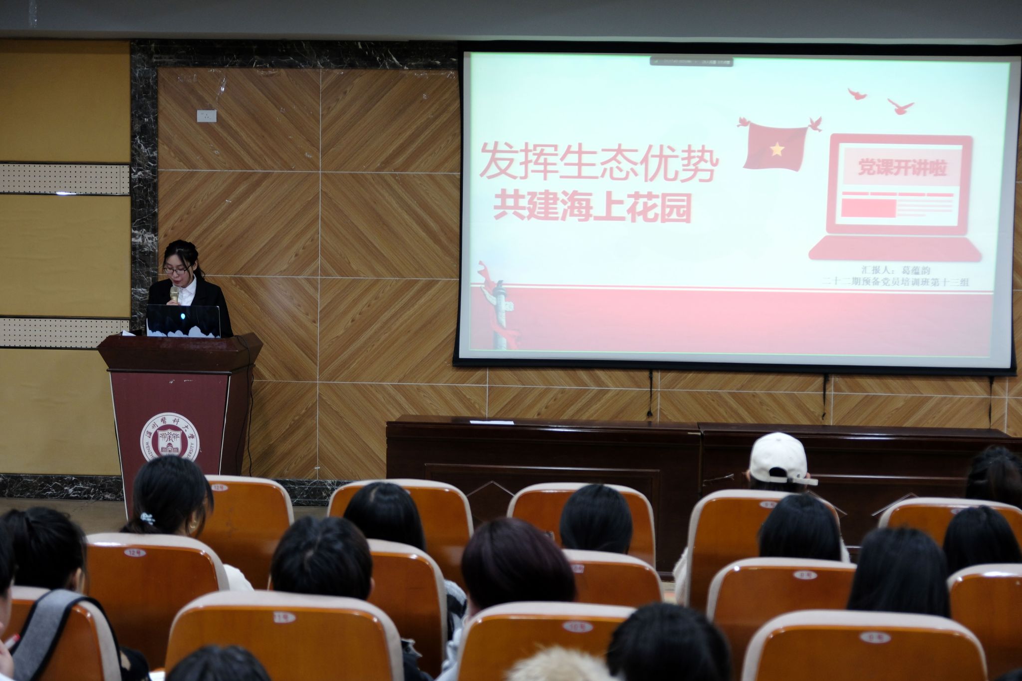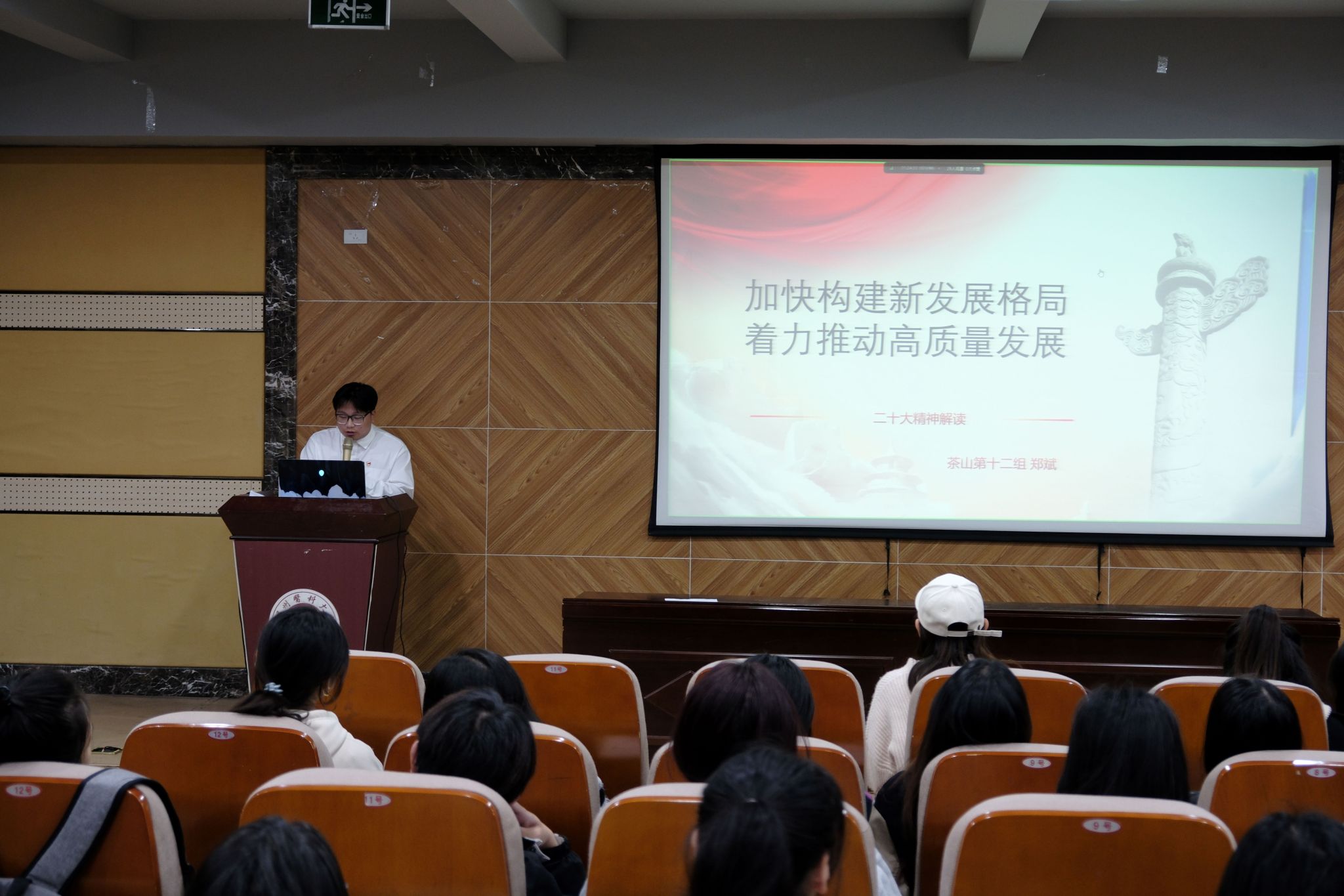 习近平总书记在二十大报告中深刻阐明中国式现代化是人与自然和谐共生的现代化,对推动绿色发展、促进人与自然和谐共生做出重大安排部署,为推进美丽中国建设指明了前进的方向。茶山十三组以海上花园的洞口为窗口,结合自身深入洞头东岙底村进行垃圾分类宣讲以及进村活动的所见所想,向学员们展示了洞头在党的领导下,积极发挥生态优势,打造绿色经济,推进宜居宜业和美乡村建设,构建千村未来、万村共富、全域和美的新格局。