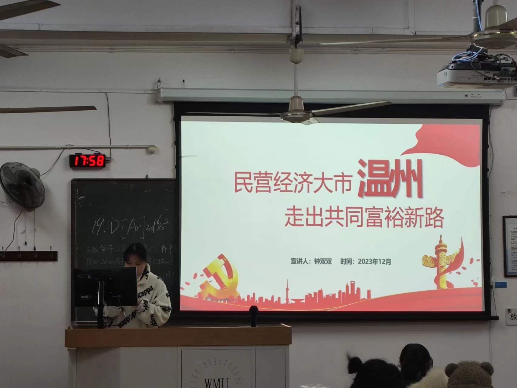 2023年12月22日,党建服务与人才培训中心在茶山校区开展了主题为“民营经济大市温州,走出共同富裕新路”的高峰论坛活动。主讲人以资本主义社会主义现代化进程、中国式现代化演进之路两部分引出共同富裕是必由之路的主题,最后在此主题的基础下,讲述了温州的领头作用。