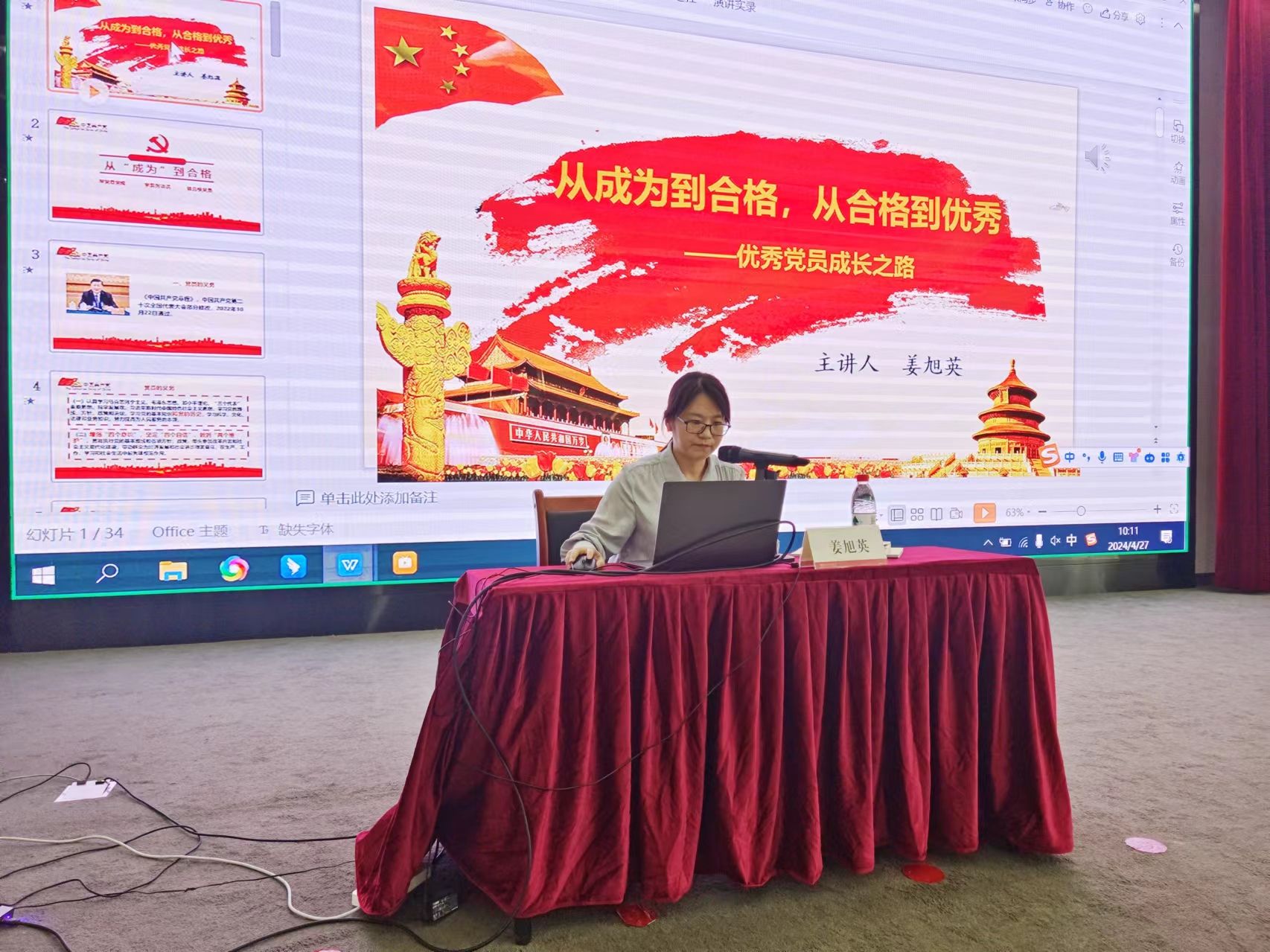 2024年4月27日10点,K1体育分党校同时在茶山校区求新楼报告厅和滨海校区仁心厅开展了入党积极分子培训班专题教学活动,姜旭英老师以“从成为到合格,从合格到优秀”为主题,加强了学员对优秀党员的认识。