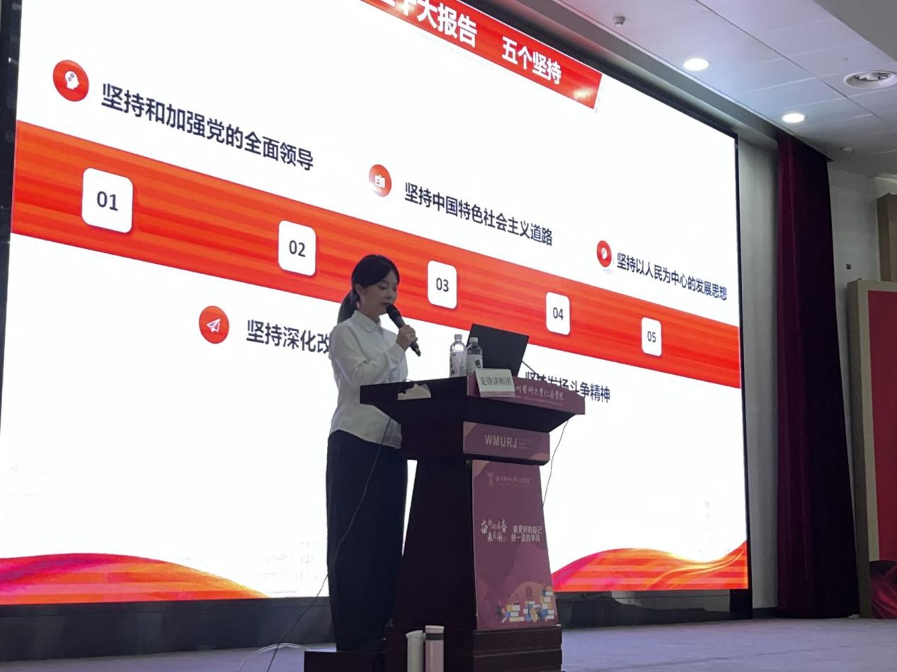 主讲人周琳为各位学员带来主题为“中国式现代化道路的温州历史与经验”的微党课。她首先介绍了中国式现代化的具体表现,引出“温州的现代化是中国式现代化的一个缩影”,再以“文成那十年”来介绍新时代温州现代化的新发展。新征程的路途中,广大青年是探索中国式现代化历史进程中的先锋力量,在探索追求中国式现代化的历程中,一代代中国青年留下了自己的奋斗足迹,燃烧了青春激情。面向未来,中国青年必将在参与推进中国式现代化的新征程中续写更加辉煌的时代篇章,以更加强烈的历史主动精神助力推进中国式现代化,为全面建设社会主义现代化国家、全面推进中华民族伟大复兴贡献青春力量。
