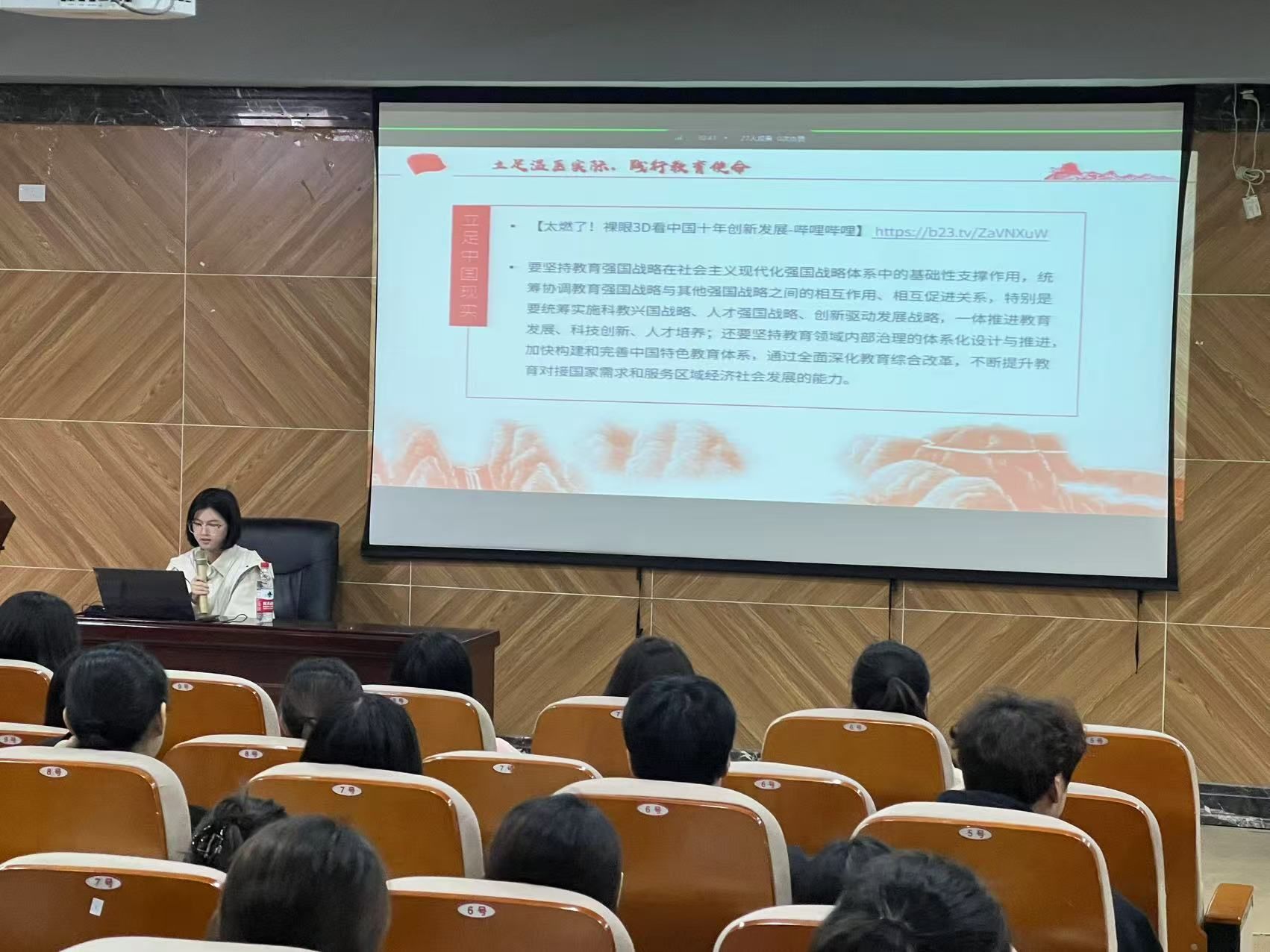 吴银仪同志以“习近平总书记关于教育的重要论述——坚持把服务中华民族伟大复兴作为教育的重要使命”为主题。习近平总书记强调,要坚持不懈用新时代中国特色社会主义思想铸魂育人,实施新时代立德树人工程。不断加强和改进新时代公司思想政治教育,教育引导青少年员工坚定马克思主义信仰、中国特色社会主义信念、中华民族伟大复兴信心,立报国强国大志向、做挺膺担当奋斗者。注重运用新时代伟大变革成功案例,充分发挥红色资源育人功能,不断拓展实践育人和网络育人的空间和阵地。加大国家通用语言文字推广力度,促进铸牢中华民族共同体意识。