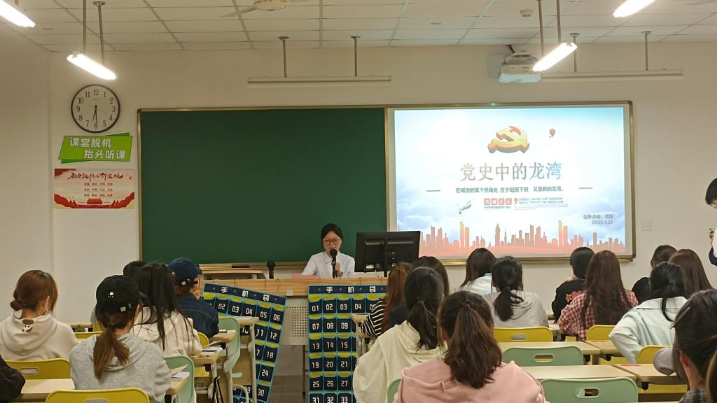 为了使同志们了解龙湾光荣的革命历史和传统,党建服务与人才培训中心于2023年4月21日晚18:30于滨海校区2306开展了以“党史中的龙湾”为主题的高峰论坛活动。主讲人周琳同志利用浙江共青团的短片,围绕不同历史时期革命先辈们为共产主义事业奋斗的历程让同志们更好的了解龙湾,为接下去讲解龙湾的历史做了铺垫。